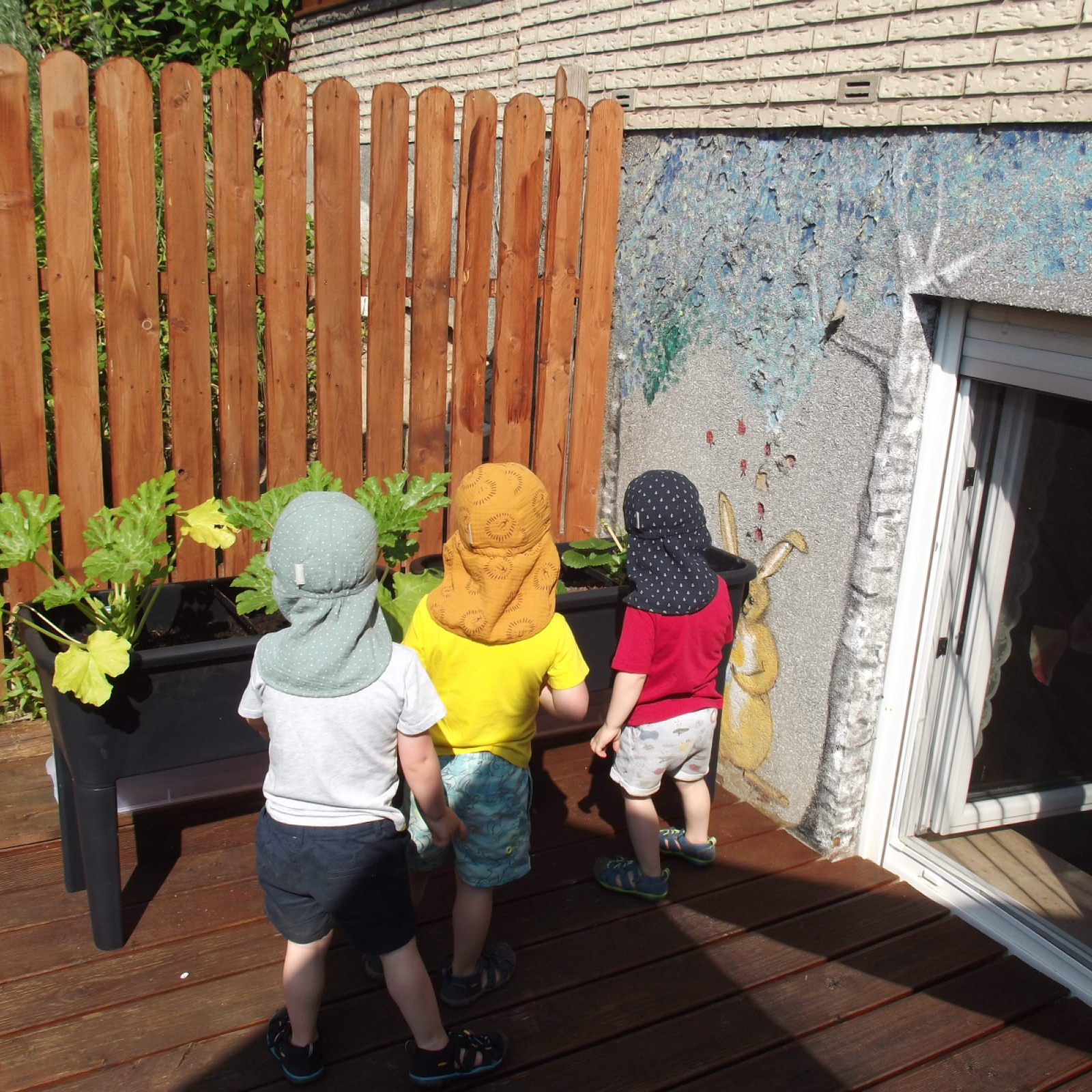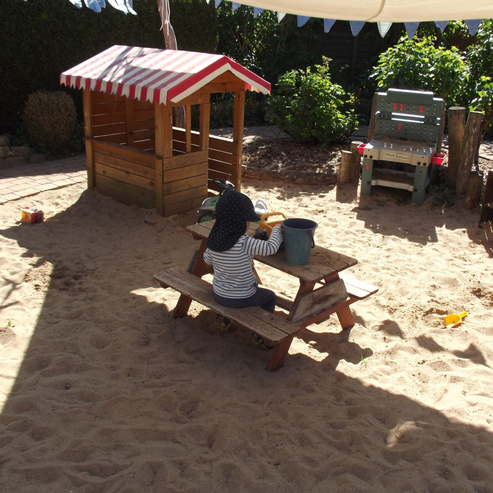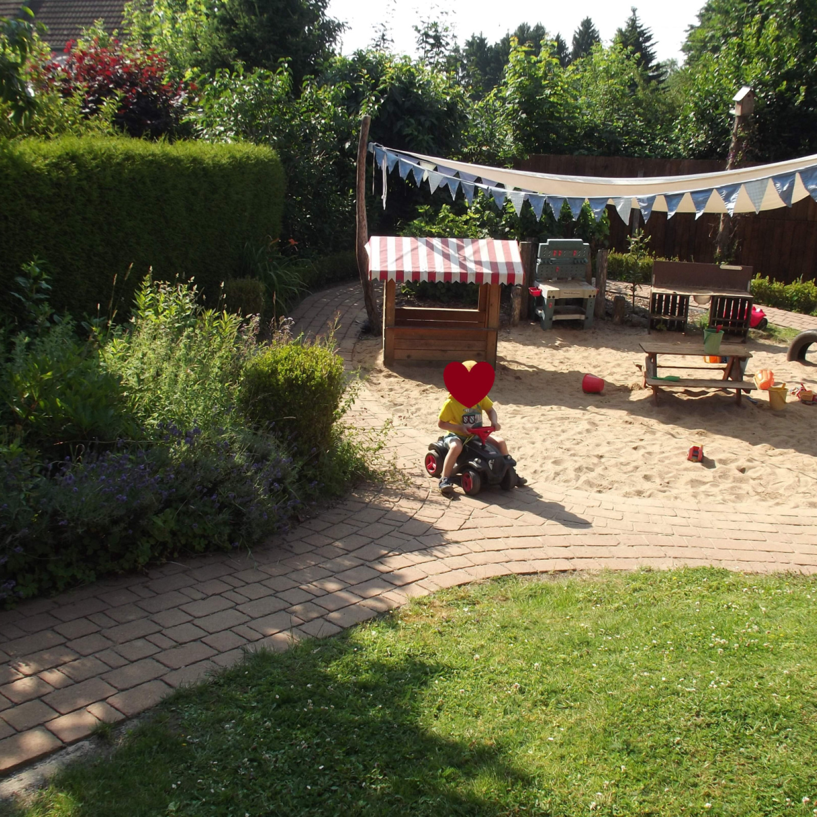 In unserem eigenen kindgerecht gestaltetem Garten haben die Kinder viele Möglichkeiten sich auszuleben. Sie können im Sand spielen und matschen, Bobbycar fahren und auf Hüpfepferdchen reiten, rennen, toben und Verstecken spielen, die Natur entdecken oder im Garten nebenan die freilaufenden Hühner unseres Vermieters beobachten. Gemeinsam beobachten wir unser Obst und Gemüse in unseren Hochbeeten beim Wachsen, pflegen und versorgen es, bevor wir dann gemeinsam ernten und es uns schmecken lassen.